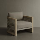 The N2 Lounge Chair harmoniously combines traditional elegance with modern approach. Featuring a meticulously crafted teak frame complemented by intricately woven panels, this chair seamlessly blends different materials to create a unique aesthetic. The woven design wraps around the chair in perfect symmetry, adding both texture and transparency to its form.